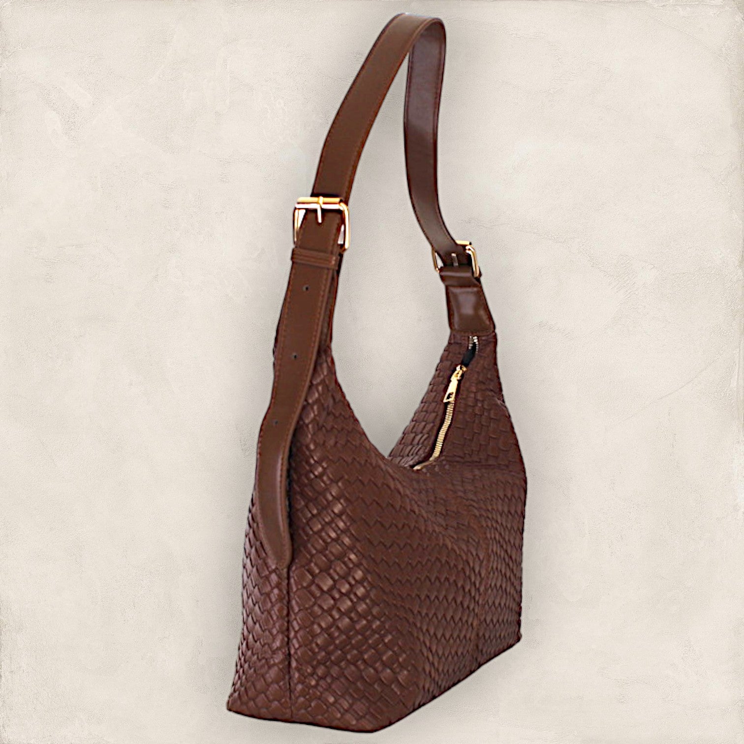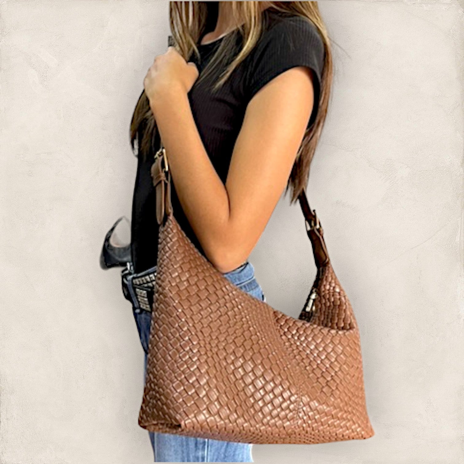 Descripción: Hermosa bolsa moderna texturizado como tejido, con una correa ajustable para que la uses cómodamente en hombro o cruzada como crossbody.