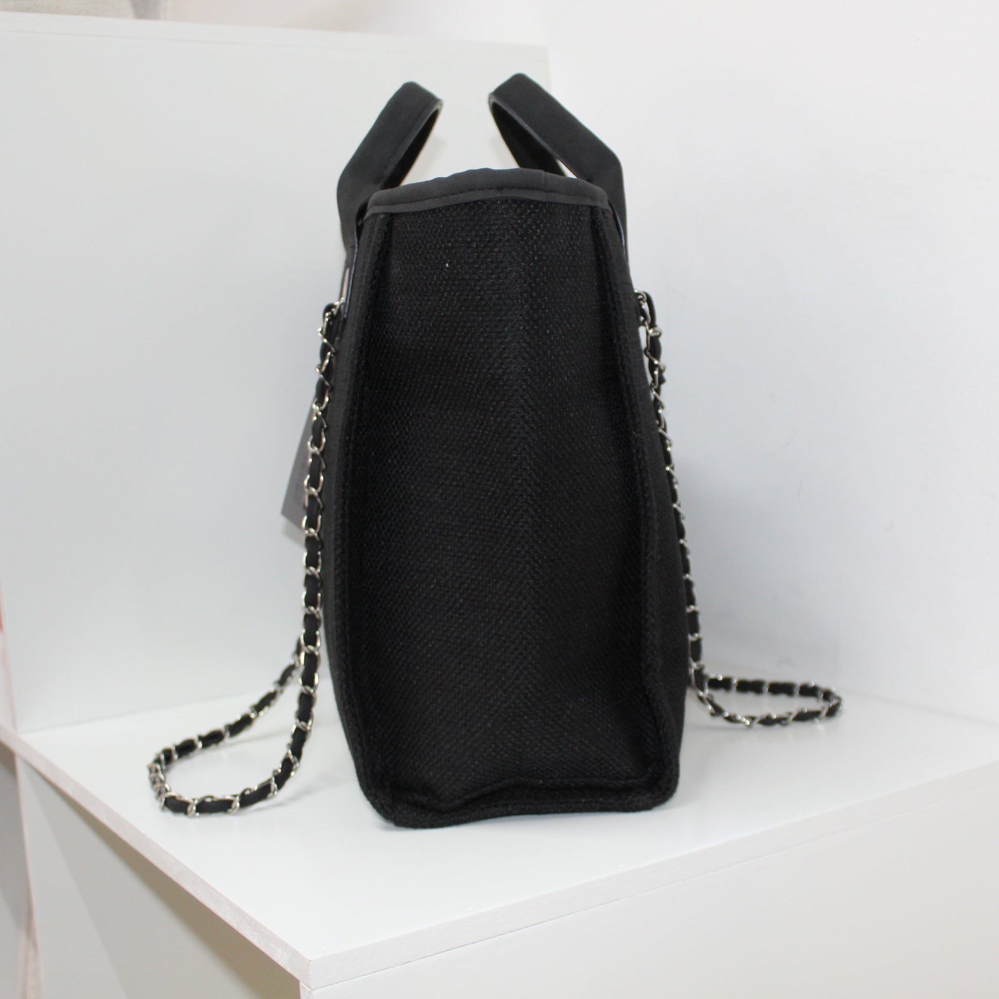 Una pieza imprescindible para tu dĂa a dĂa: esta bolsa tote en tono negro combina elegancia y funcionalidad. Con su diseño estructurado, asas cortas reforzadas y cadena decorativa con detalle en piel sintĂ©tica, aporta un estilo cĂłmodo y versátil que combina con cualquier look.